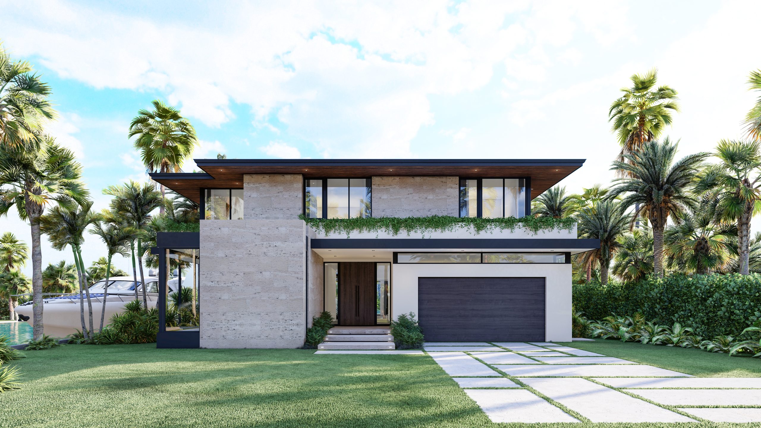 Architectural plans by SDH Studio are available for a striking 6,264 SF modern residence with 6 bedrooms plus a study, den, and 6.5 baths, designed for luxury waterfront living and seamless indoor-outdoor flow.